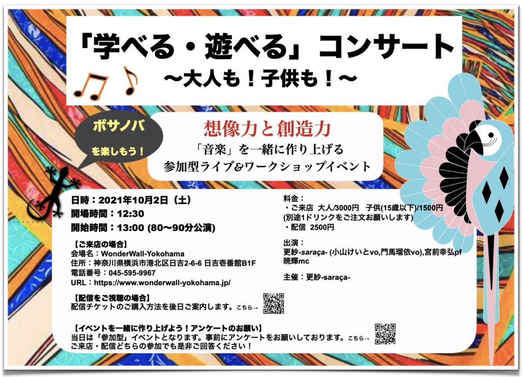 「学べる・遊べる」コンサート***大人も!子供も!ボサノバを楽しもう!